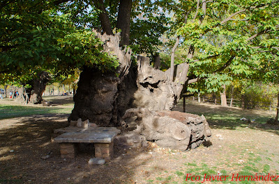 Pero lo mejor lo hemos dejado para el final de ruta, es el área recreativa de los Castaños, un parque con una serie de Castaños Milenarios realmente espectaculares, con unos troncos llenos de formas, figuras, ramas y sobre todo una gama de colores otoñales preciosos. Al haberse construido un parque contamos con una serie de servicios como columpios, mesas, barbacoas e incluso un pequeño bar que suele abrir los Domingos. El lugar para finalizar la ruta bien merece hacerla.